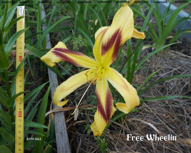 Лилейник "ФРИ ВИЛИН". Спайдер, кремово-жёлтый с малиновым пятном в центре в форме звезды и большим зелёным горлом. Цветок ОГРОМНЫЙ, от 28 см в диаметре. обильно цветущий сорт -до 40 бутонов на 1 цветоносе ! ПОВТОРНОЦВЕТУЩИЙ.