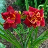 Бархатистый, винно-красный, с тонким кремовым краем волнистых лепестков. Лимонное горло. Высота куста 55 см. Цветение - повторное.