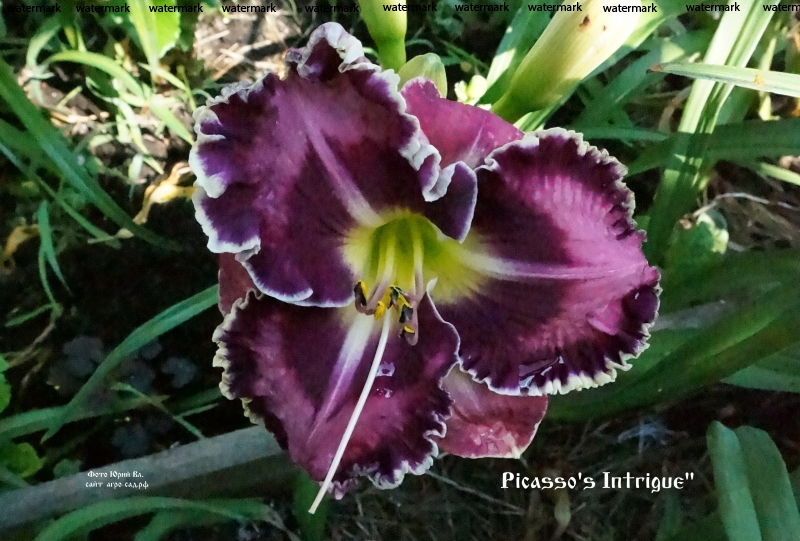 Орхидный сорт с насыщенным черно-пурпурным глазом и такой же каймой с отлично гофрированной серебристо-желтой каймой. Лучший пурпурный сорт селекционера ! Цена 2014г была- $200.