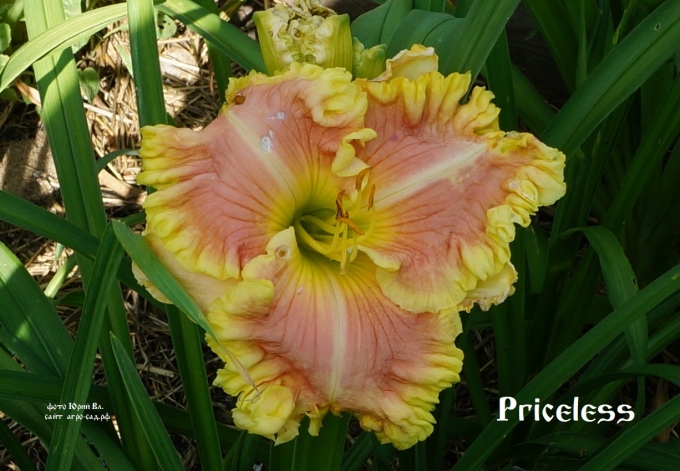 Завораживающая гофрированная зелено-золотая широкая кайма (до 3х см !). Этот ОГРОМНЫЙ (18 см) красивый розовый цветок обладает исключительно чистым цветом. У взрослого куста на каждом цветоносе до 30 бутонов!