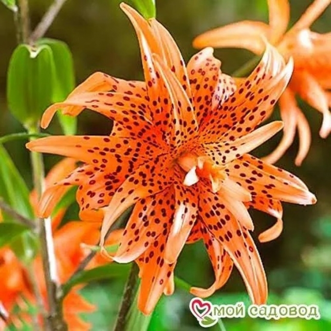 Азиатский гибрид, тигровая, МАХРОВЫЕ цветки оранжевого цвета с пурпурным крапом, чалмовидные. , H-110см
