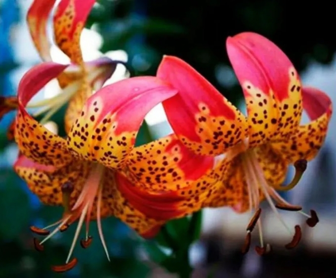 Первый гибрид Longiflorum x L.pardalinum. Высокий мощный стебль, на котором многочисленные широко расставленными цветки., H-120 см.