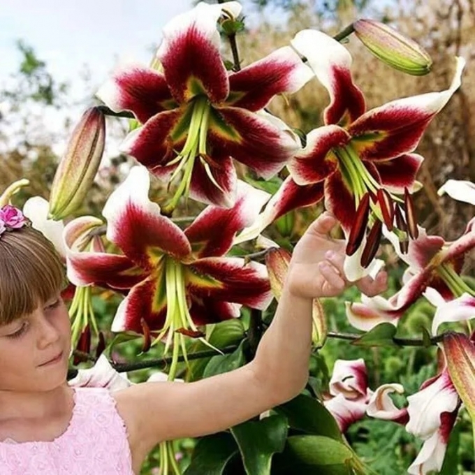 ОТ- гибрид, бордовый с белыми кончиками и жёлто-зелёной сердцевиной, H-150 см.