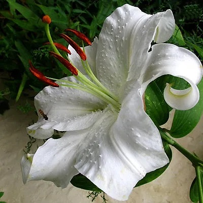 OR гибрид, белый с оранжевыми тычинками, крупный цветок, раннее цветение, H-100 см.