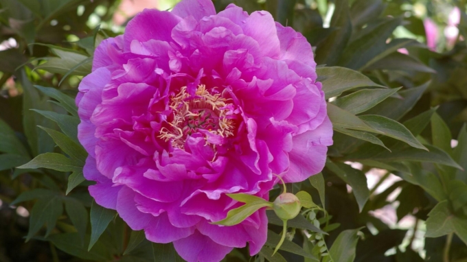 ИТО-гибрид, полумахровые и махровые цветки ярко-розового (цвета фуксии) окраса.