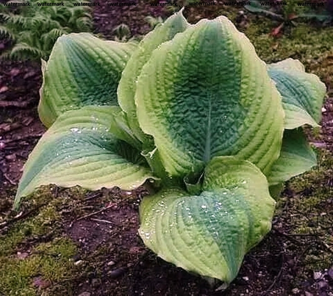 Темно-зеленые листья сердцевидной формы с очень широкими желтыми полями достаточно плотные. Жилки сильно вдавленные.
