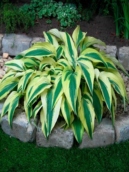 Невысокий, но раскидистый сорт хосты с ниспадающими, продолговатыми листьями.