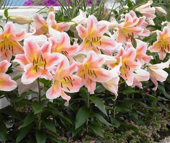 OR гибрид, нежно-лососевый с желтым центром и оранжевым крапом по всей длине лепестка, H-100 см.
