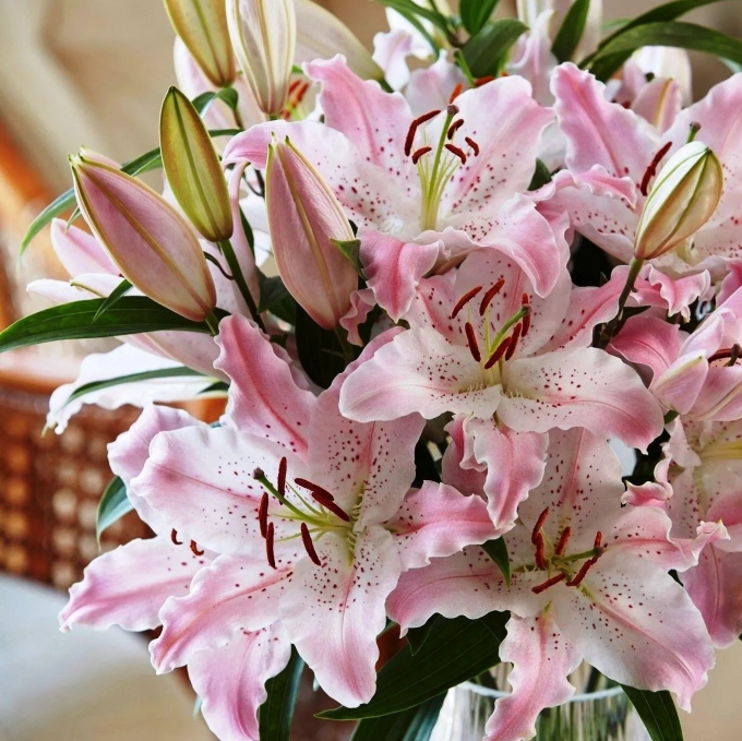Темно-розовый крап, легкое гофре по краю лепестков, H-100 см.